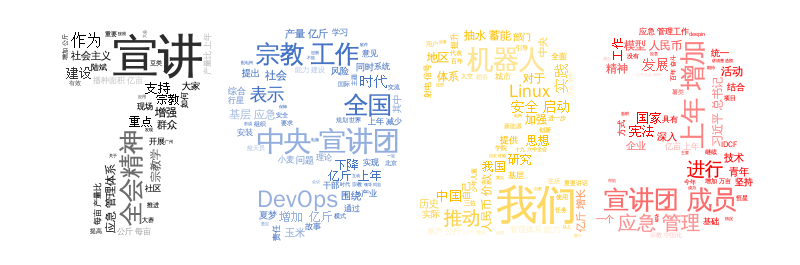 | 高频词语 | 应急 | 宗教 | 宣讲 | 中央 | 工作 | 我们 | 亿斤 | 上年 | 增加 | 全国 |