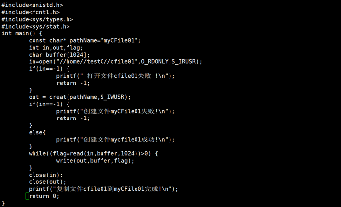 2、在自己的工作目录创建C程序源码文件“fileCopy.c”: