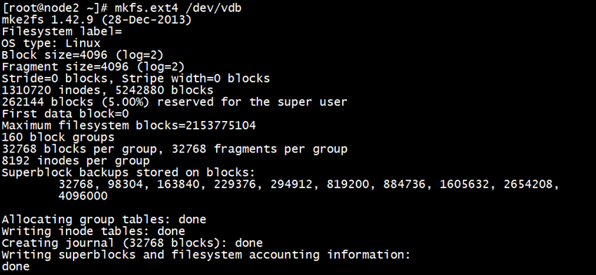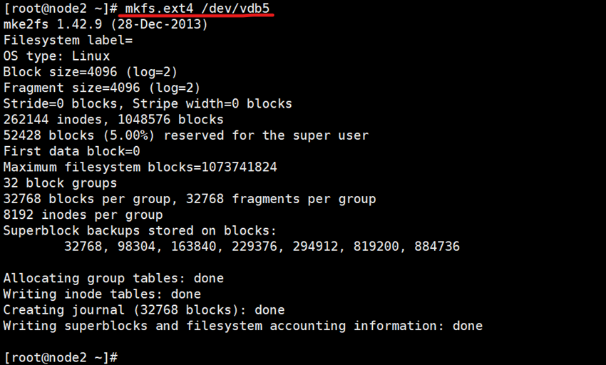 (20)格式化vdb5、vdb6、vdb7(均为逻辑分区),这里以vdb5为例,结果显示格式化成功。