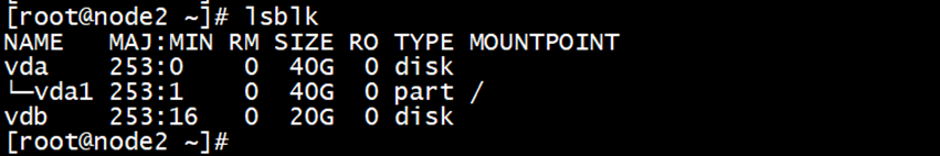 (6)查看硬盘信息,可看出vdb硬盘设备变为无分区的状态。