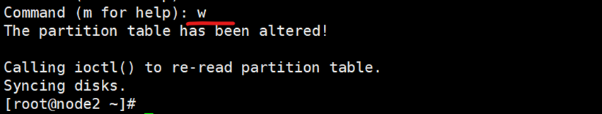(15)最后按w将前面的分区操作结果写入分区表,保存分区状态。