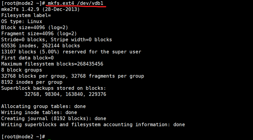(18)格式化各个分区,首先格式化vdb1、vdb2、vdb2(均为主分区),这里以vdb1为例。