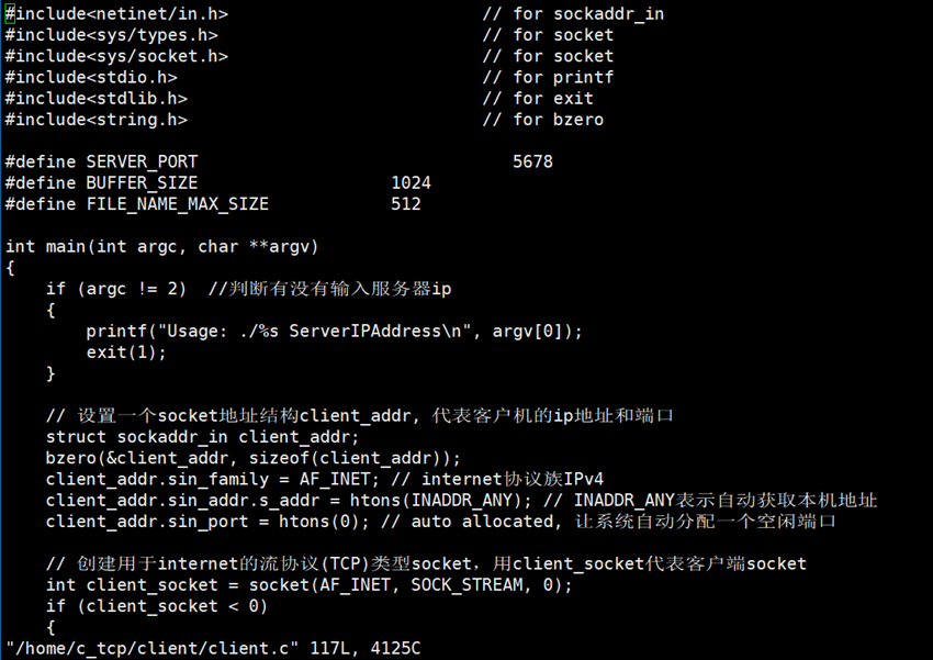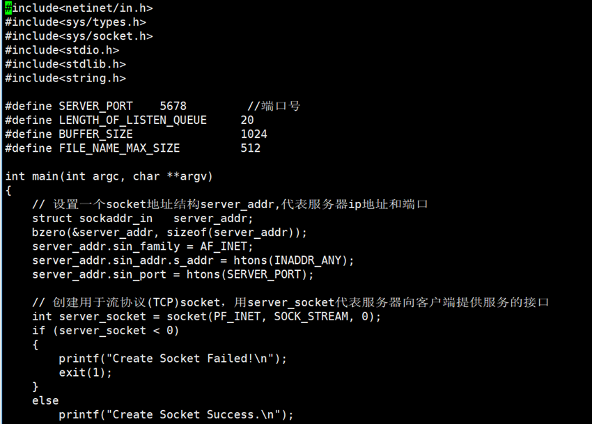 (1)TCP客户端发送一个FIN,用来关闭客户到服务器的数据传送; (2)服务器收到这个FIN,它发回一个ACK,确认序号为收到的序号加1。和SYN一样,一个FIN将占用一个序号; (3)服务器关闭客户端的连接,发送一个FIN给客户端; (4)客户端发回ACK报文确认,并将确认序号设置为收到序号加1。 【原文链接:TCP连接原理_悠然予夏的博客-CSDN博客】 【参考链接:TCP连接建立过程_tcp连接的建立过程_无敌狗剩的博客-CSDN博客】 二、基于C语言的TCP连接的实现 1. 服务器端C程序 server.c