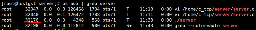 10. 想办法彻底关掉服务端sever进程 (1)首先,我们通过命令“ps aux | grep server”找到对应进程的进程ID,也就是PID。