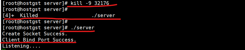 (3)通过“kill -9 PID”来彻底关掉server的进程,然后再重新尝试启动server程序,这次终于成功了: