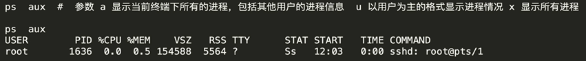 au(x) 输出格式 : USER PID %CPU %MEM VSZ RSS TTY STAT START TIME