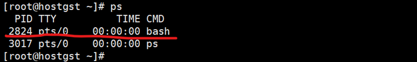 2. 子进程小练习: (1)查看当前bash会话的PID进程号为“2824”