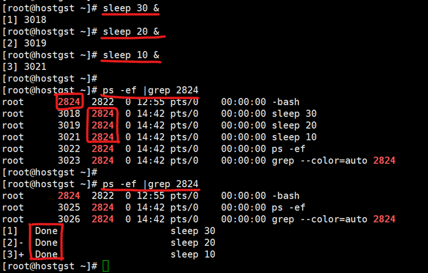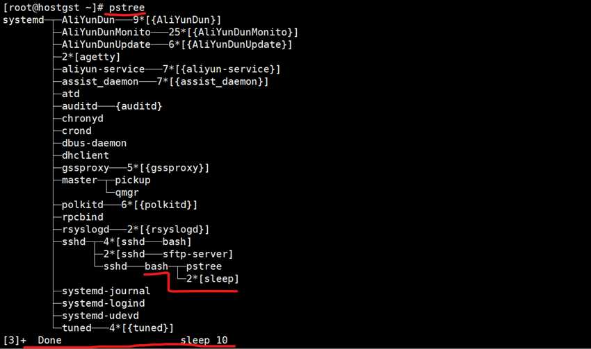 (2)同时多次调用sleep命令,查看进程之间的子父关系: