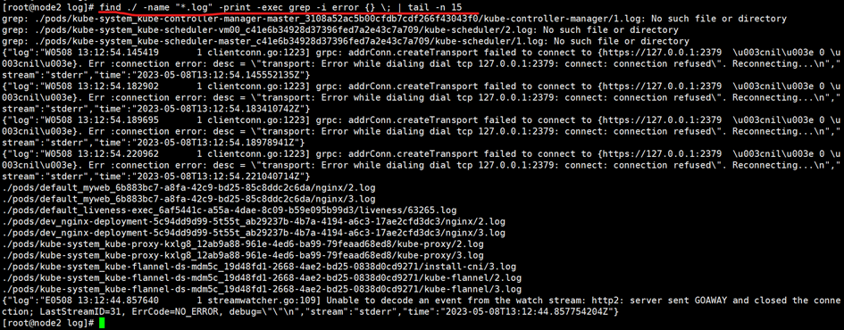 方法一解释 : find ./ -name "*.log" | xargs tail -n 5 find ./ -name "*.log" 输出当前目录与子目录中以log结尾的日志文件名