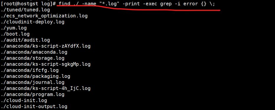 下面以log结尾的文件中含有 ERROR (不区分大小写)的内容。 find ./ -name "*.log" -print