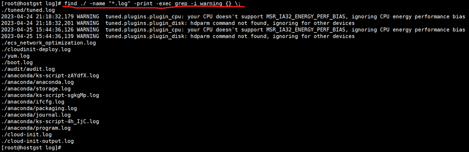 。 方法二:通过find 命令的 -exec 选项来显示多个日志文件的最后五行: [root@hostgst log]#