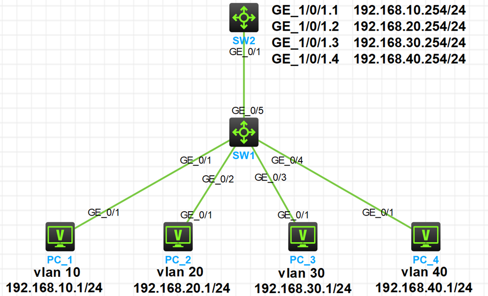 一、名词解释 dot1q就是802.1q,是vlan的一种封装方式。dot就是点的意思,就简写为dot1q了。 【参考资料】802.1Q帧的格式 与 VLAN的类型 二、实验拓扑