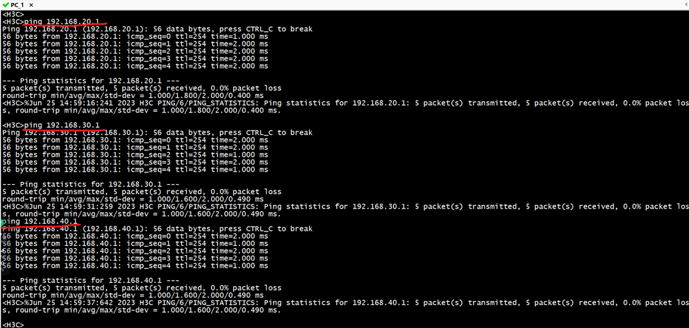 4、不同VLAN的PC进行PING测试(以PC_1 PING