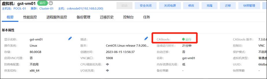 一、需求描述 之前创建了一个虚拟机,好久没用忘了密码,导致现在无法登录进去。为了便于后续对该虚拟机的正常使用,现在需要在CAS CVM Web管理页面对虚拟机密码进行修改。 二、修改虚拟机密码操作前提 虚拟机已安装CAStools,且CAStools处于正常运行状态