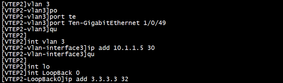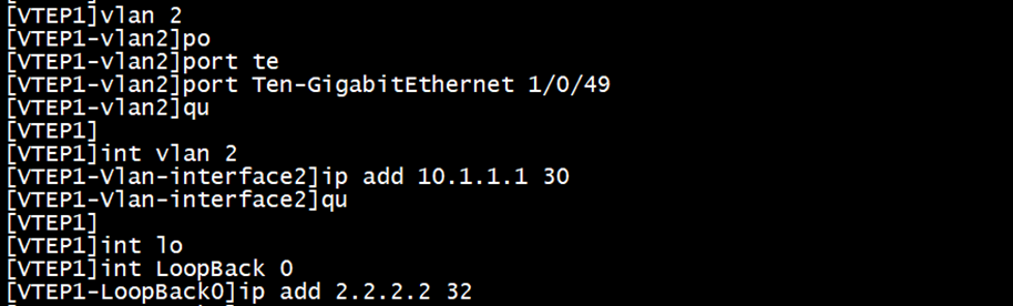 二、配置步骤 1. 配置各接口的IP地址 1. 配置VTEP1的接口IP地址