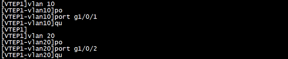 上将 VXLAN 隧道 Tunnel1与 VXLAN 10 和 VXLAN 20 关联。