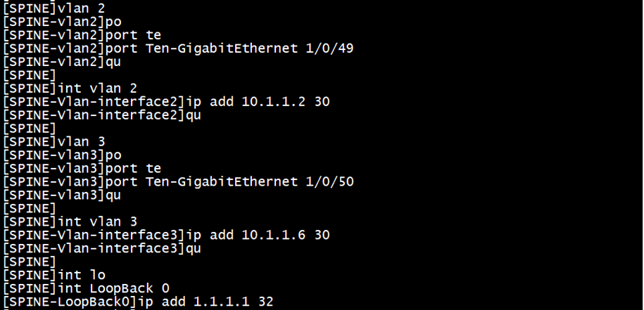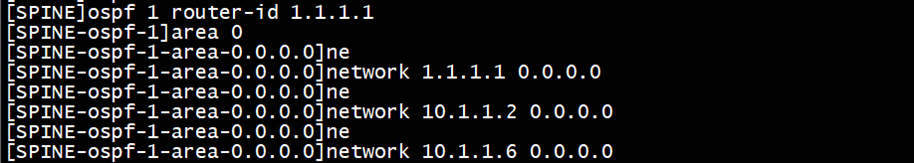 3. 在SPINE上配置 OSPF 发布接口所在网段的路由。