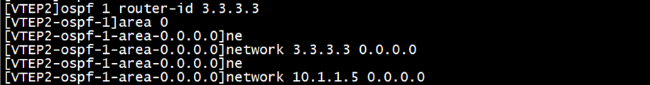 2. 在VTEP2上配置 OSPF 发布接口所在网段的路由。
