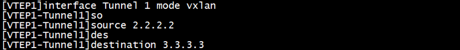 上创建到达 VTEP1 的 VXLAN 隧道 Tunnel1。