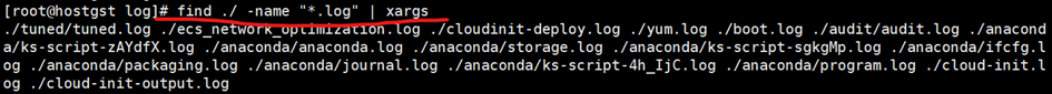 试一下不换行输出: [root@hostgst log] # find ./ -name "*.log" | xargs